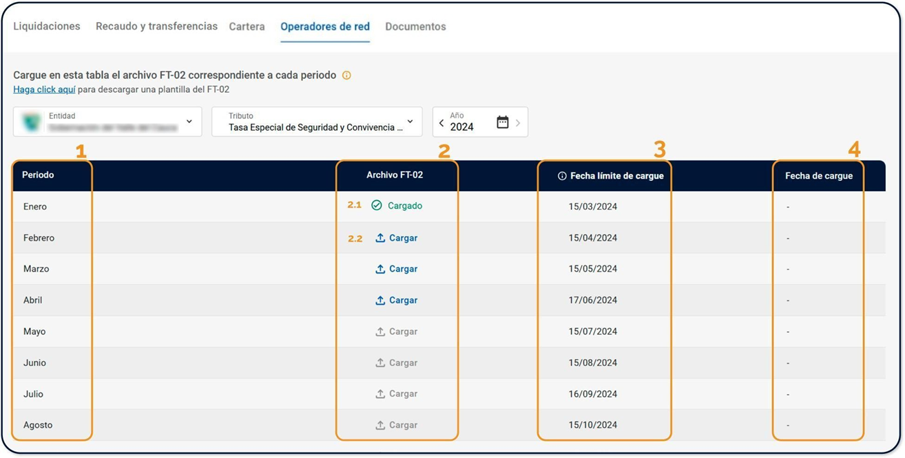 En el tab “Operadores de red” (cargue del Formato FT-02), el sistema mostrará la siguiente tabla: