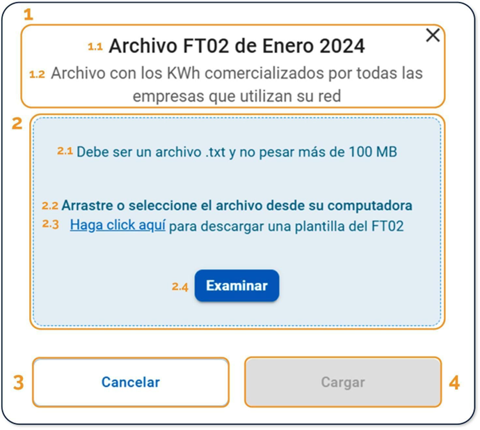 Ventana modal de cargue del archivo FT-02