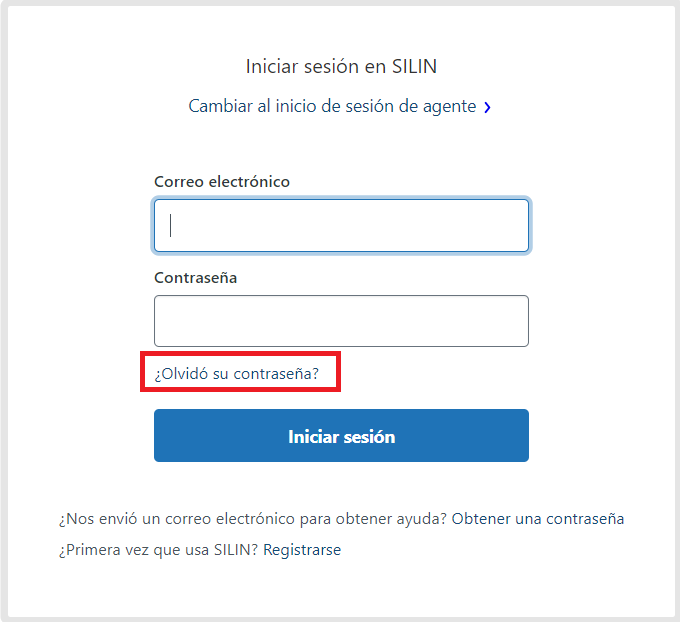 Para recuperar la contraseña en el Centro de Ayuda deberá seleccionar "¿Olvido su contraseña?"