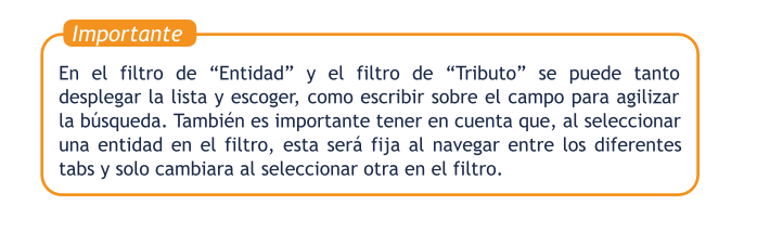 Filtro “Tributo”: en este filtro se debe escoger el tributo al cual corresponde la información a cargar.