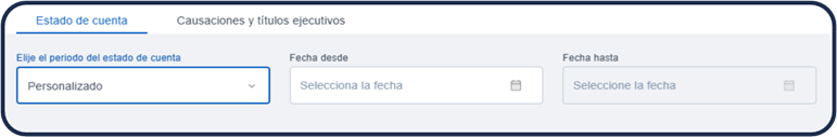 - Personalizado: si se selecciona “Personalizado, aparecerán dos campos de fecha, “Desde” y “Hasta” donde se deben seleccionar el periodo del cual se quiere generar el estado de cuenta.