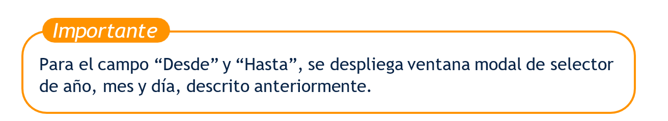 2.1.4 Desde: permite seleccionar la fecha inicio que se desea tener en cuenta en el reporte.