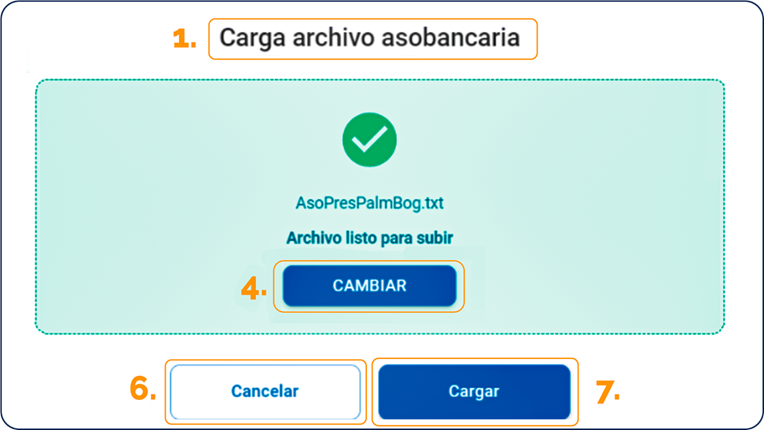 Ventana “Cargar archivo” Asobancaria: al dar clic sobre la opción cargar se despliega la siguiente ventana: