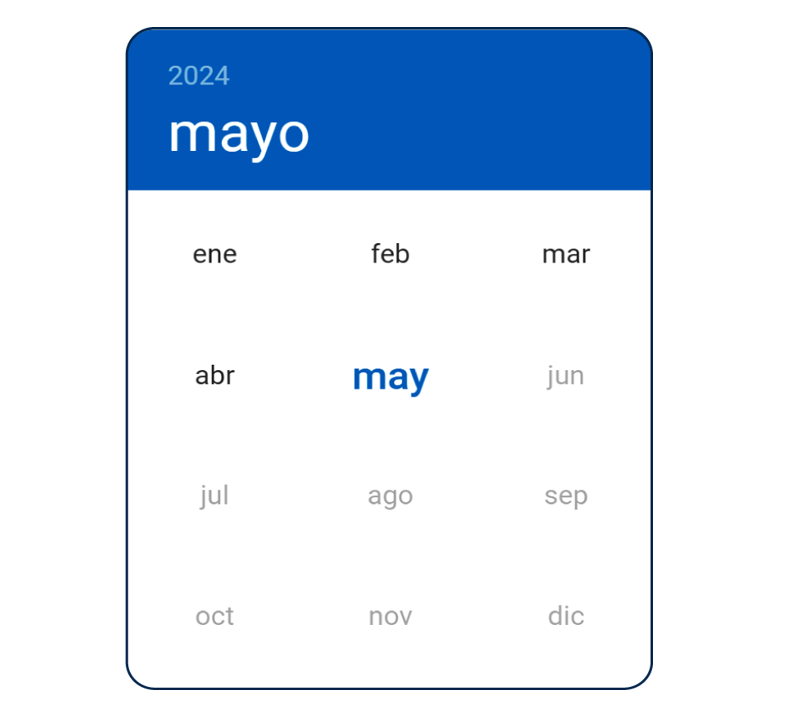 2.2.2. Periodo de corte: este filtro permite seleccionar el periodo exacto (por mes) del informe que descargaremos. Al dar clic sobre el filtro se desplegará la ventana modal de elección de mes: